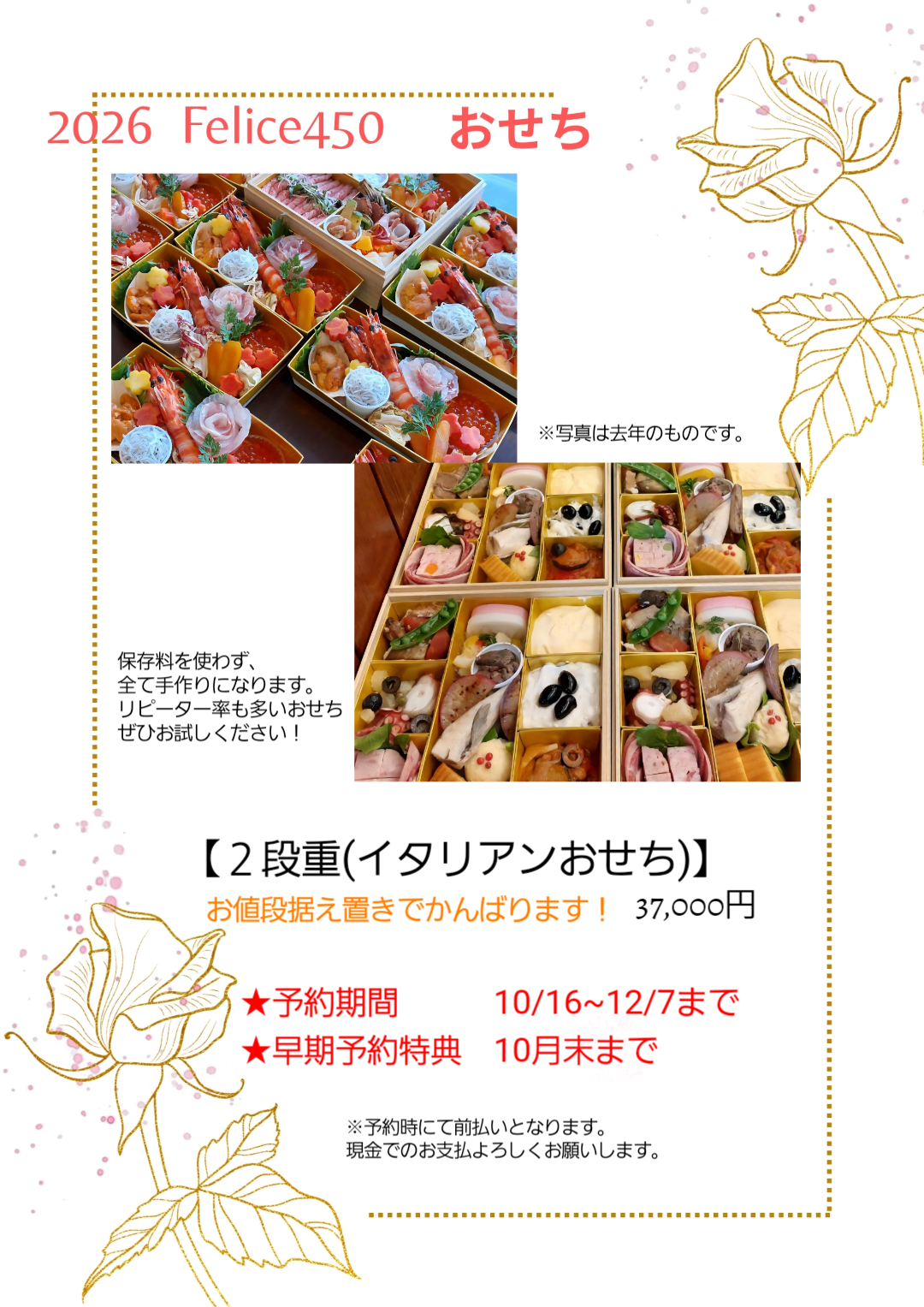 2年目からスタートしたので、6回目となるfelice450おせち✨
