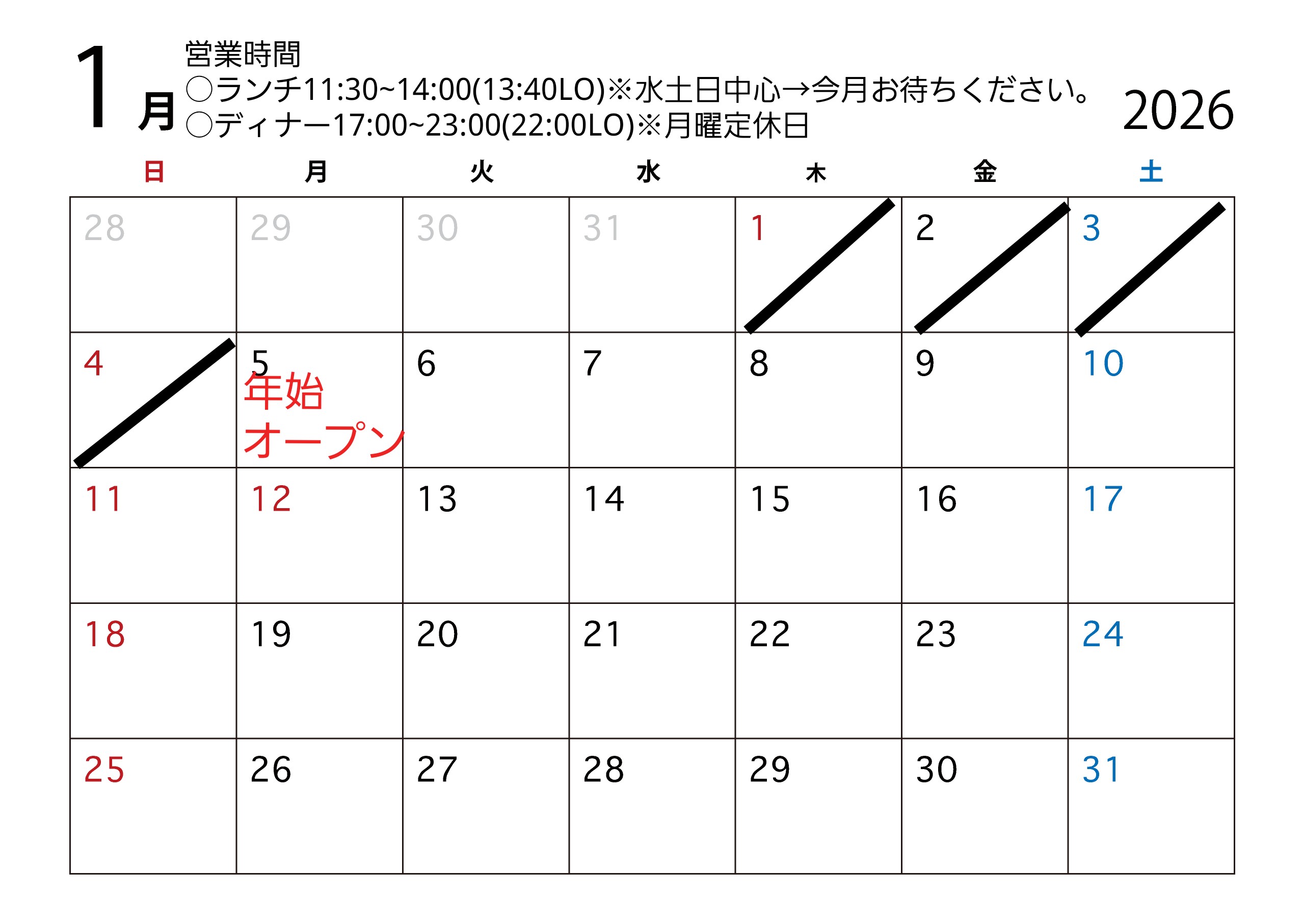 年始オープン日
