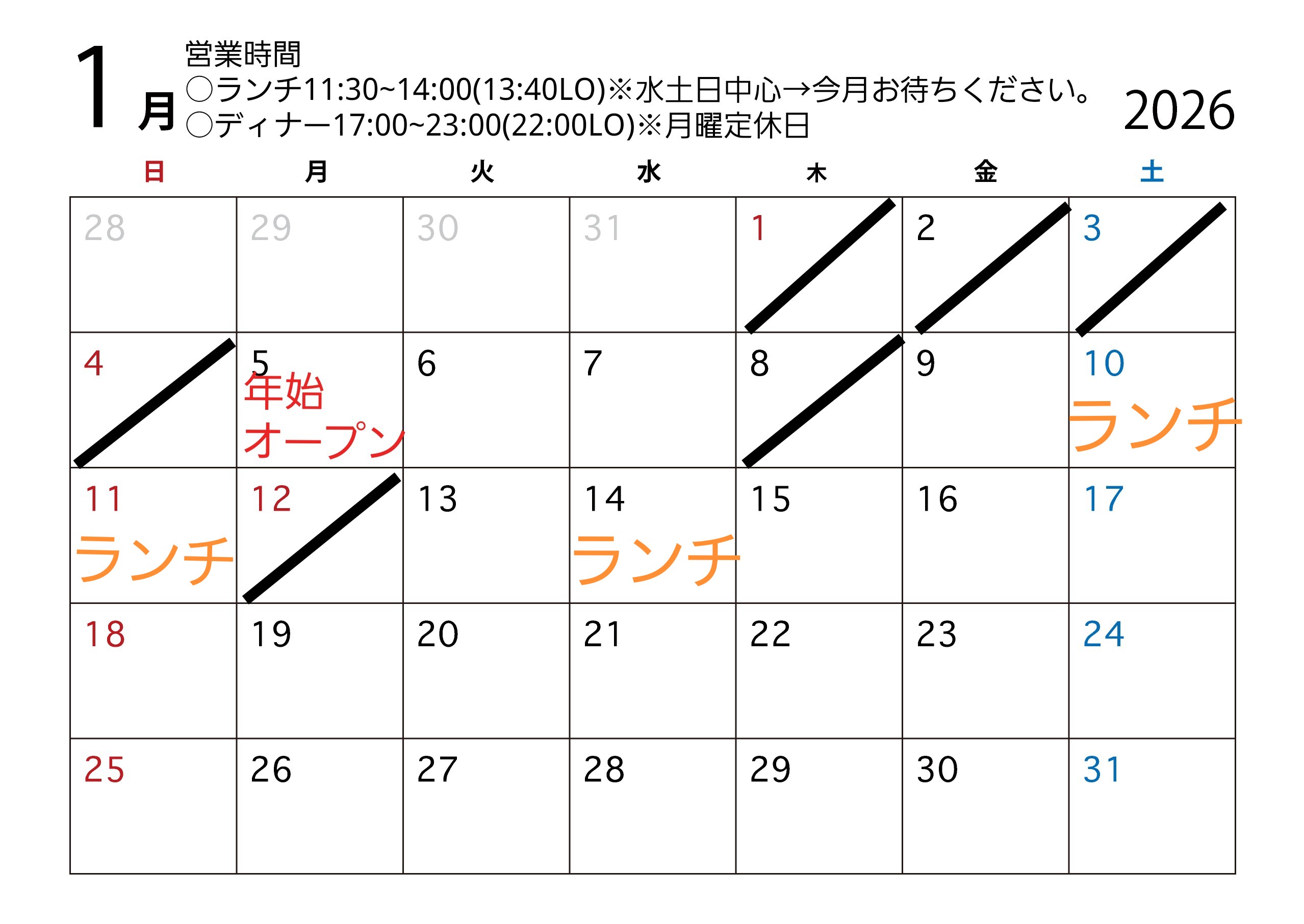 お休み&ランチの予定はまた後日お知らせします。